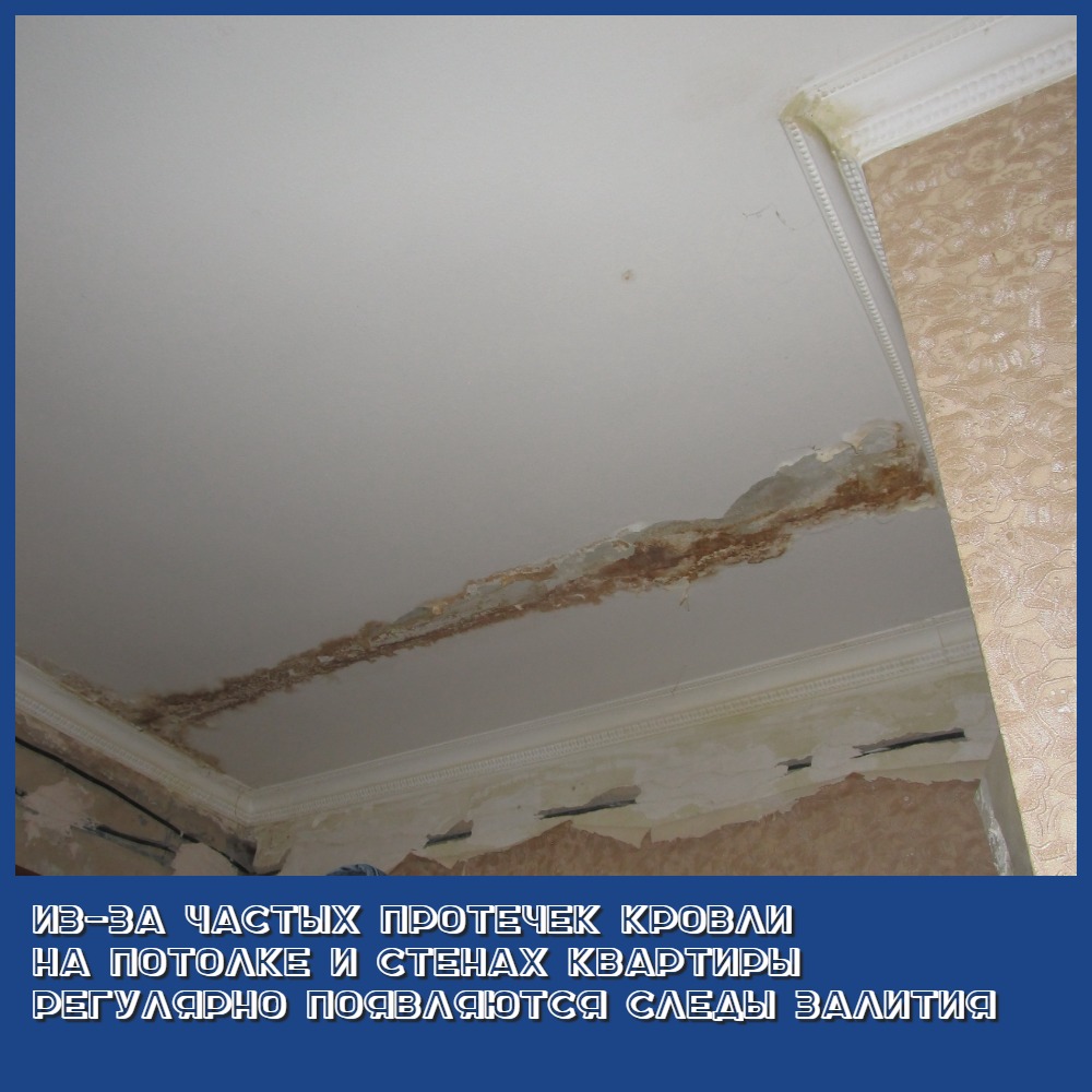 Из-за частых протечек кровли на потолке и стенах квартиры заявительницы регулярно появляются влажные следы залития. В обращении женщина указала, что причина залития управляющей домом организацией не устраняется. При этом постоянные протечки, по мнению хозяйки квартиры, могут вызвать пожароопасную ситуацию.