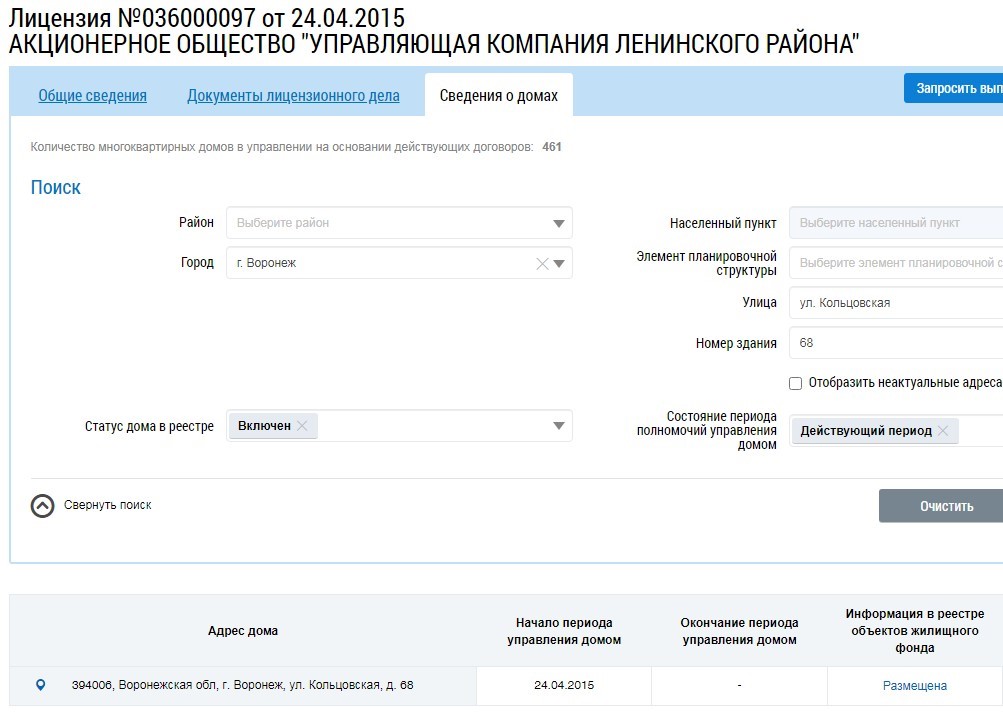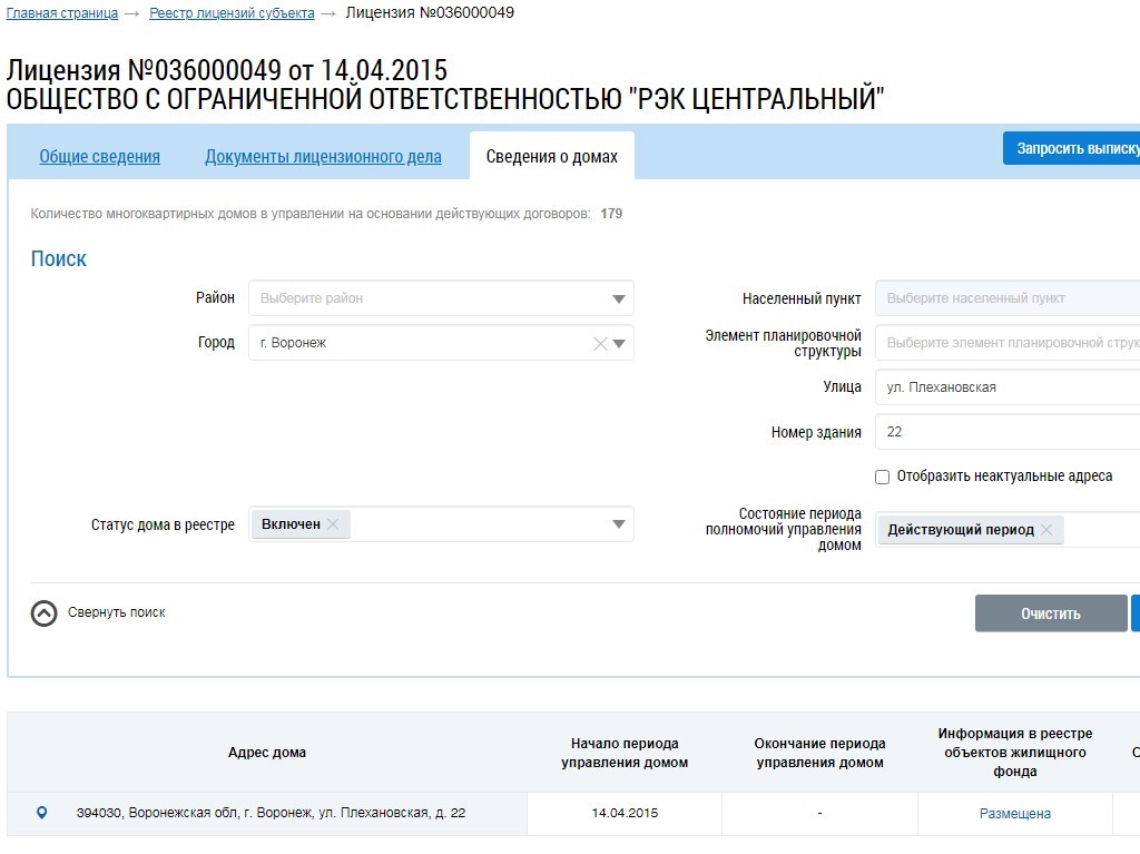 Сведения об управлении тем или иным домом управляющей организацией содержатся в реестре лицензий Воронежской области. Реестры лицензий открыты, общедоступны и размещены в государственной информационной системе жилищно-коммунального хозяйства (ГИС ЖКХ, адрес страницы в сети Интернет: dom.gosuslugi.ru). В случаях, когда собственники избрали новую управляющую компанию, она вправе начать управление домом и выпускать платежные документы на оплату своих услуг, только после внесения соответствующих сведений в реестр лицензий.