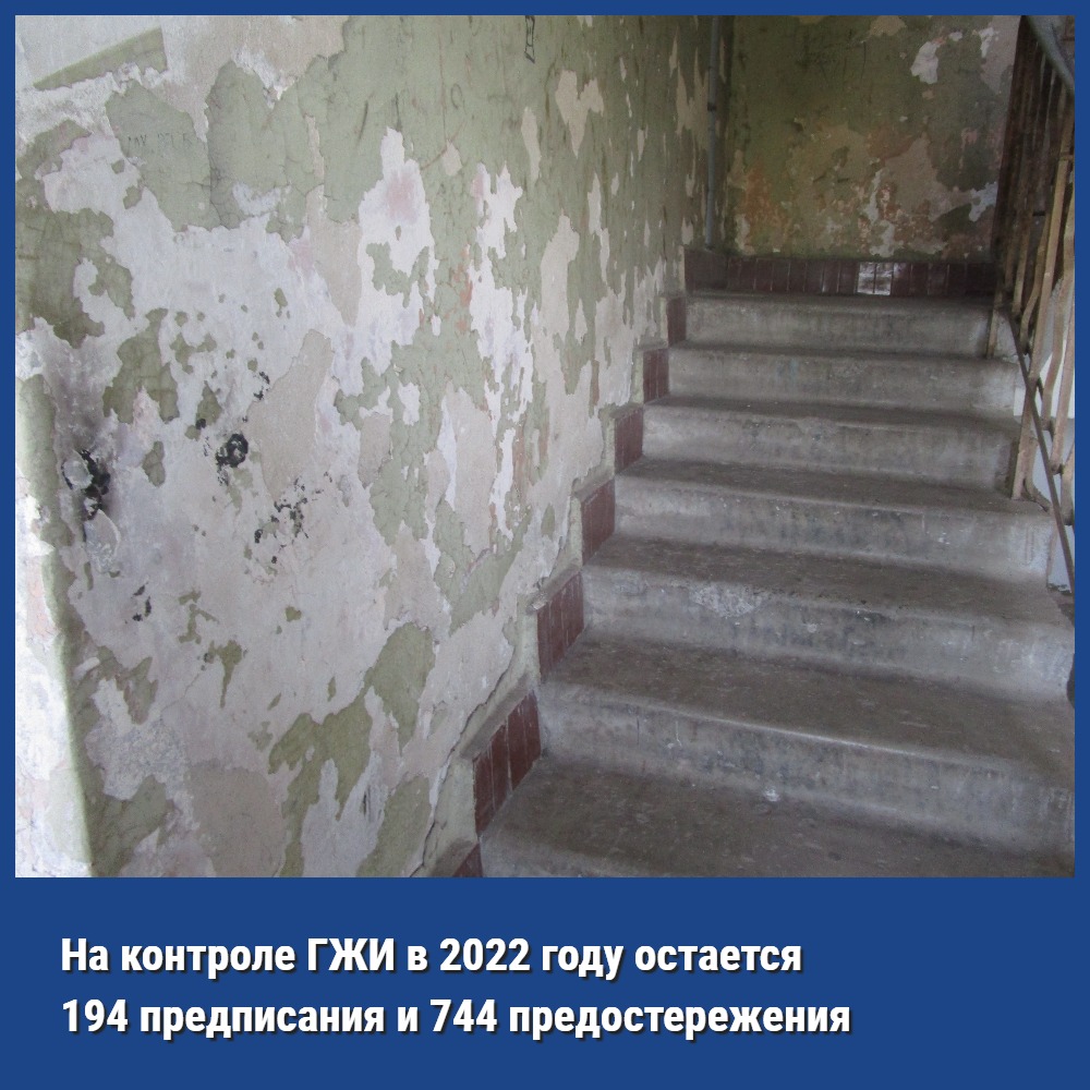 В течение 2021 года жилищными инспекторами выдано 900 предписаний об устранении выявленных в ходе проверок нарушений жилищного законодательства. Управляющими и ресурсоснабжающими организациями исполнено 440 предписаний.