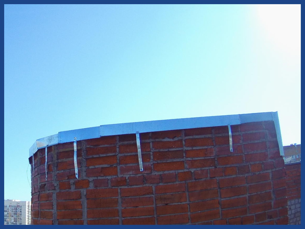 Получив соответствующее уведомление, управляющая организация до проведения инспекционного визита восстановила металлический парапет для защиты кирпичной кладки по всему периметру кровли над подъездом многоквартирного дома.