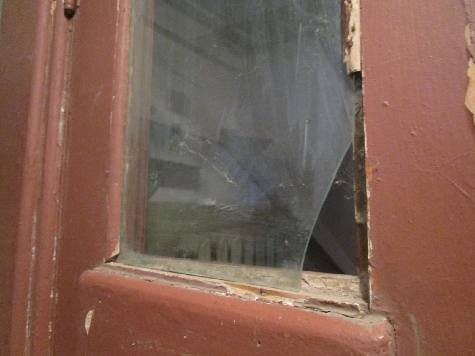 В подъезде № 2 проверка показала наличие деформированных, с последствиями горения и отсутствия покрасочного слоя почтовых ящиков, трещины на оконном остеклении. В подъезде № 3 отсутствовало запорное устройство на вводном распределительном электрическом шкафу (ВРУ), на потолке 5-го этажа лестничной клетки были видны следы от протекания кровли, расслоение покрасочного слоя оконных и дверных блоков, отсутствие напольной плитки и разрушение цементной стяжки пола лестничных клеток.